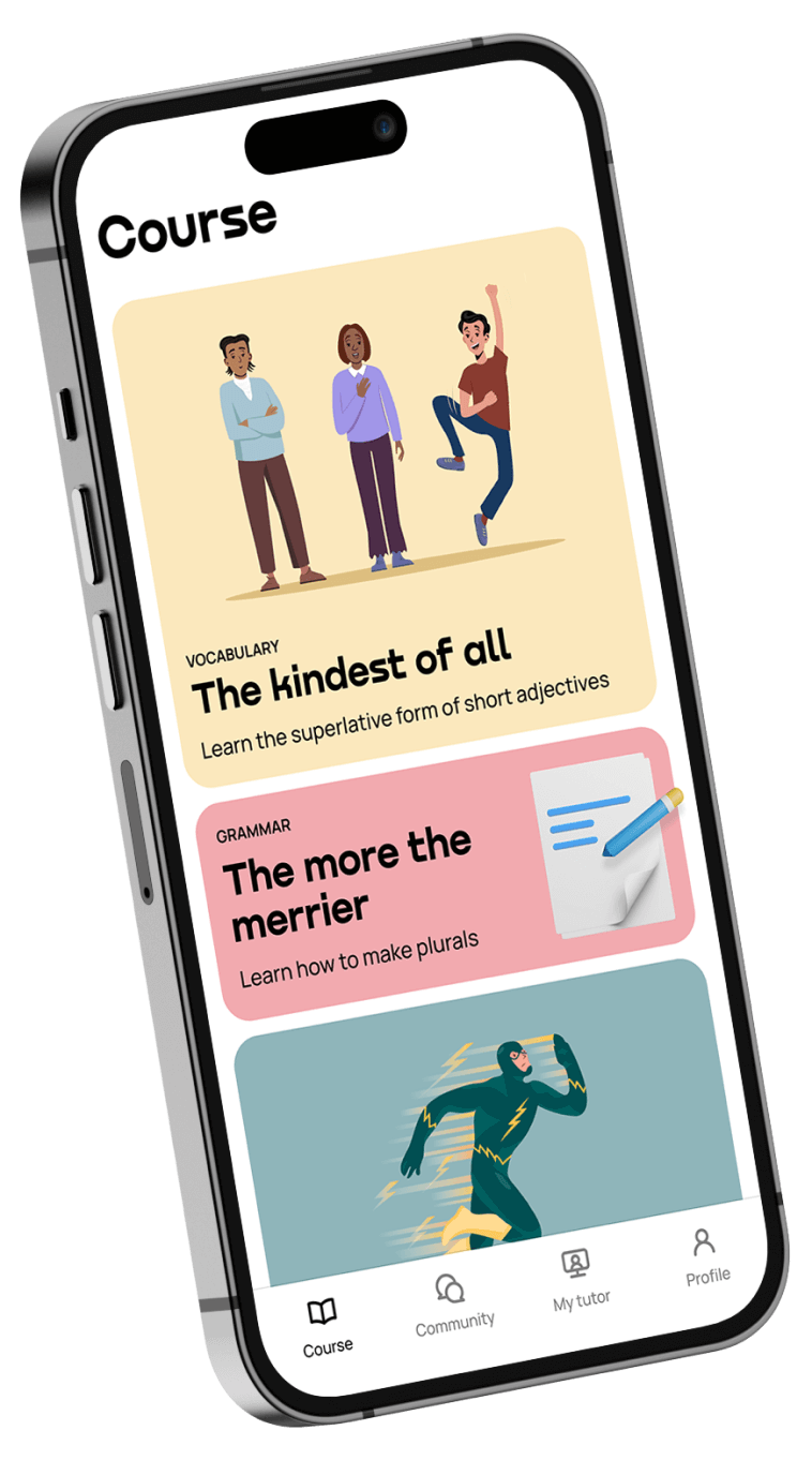 По-перше, наш курс англійської англійською розрахований на будь-який рівень, навіть на початківців. По-друге, ти завжди можеш змінити мову і перейти на курс англійської українською!
