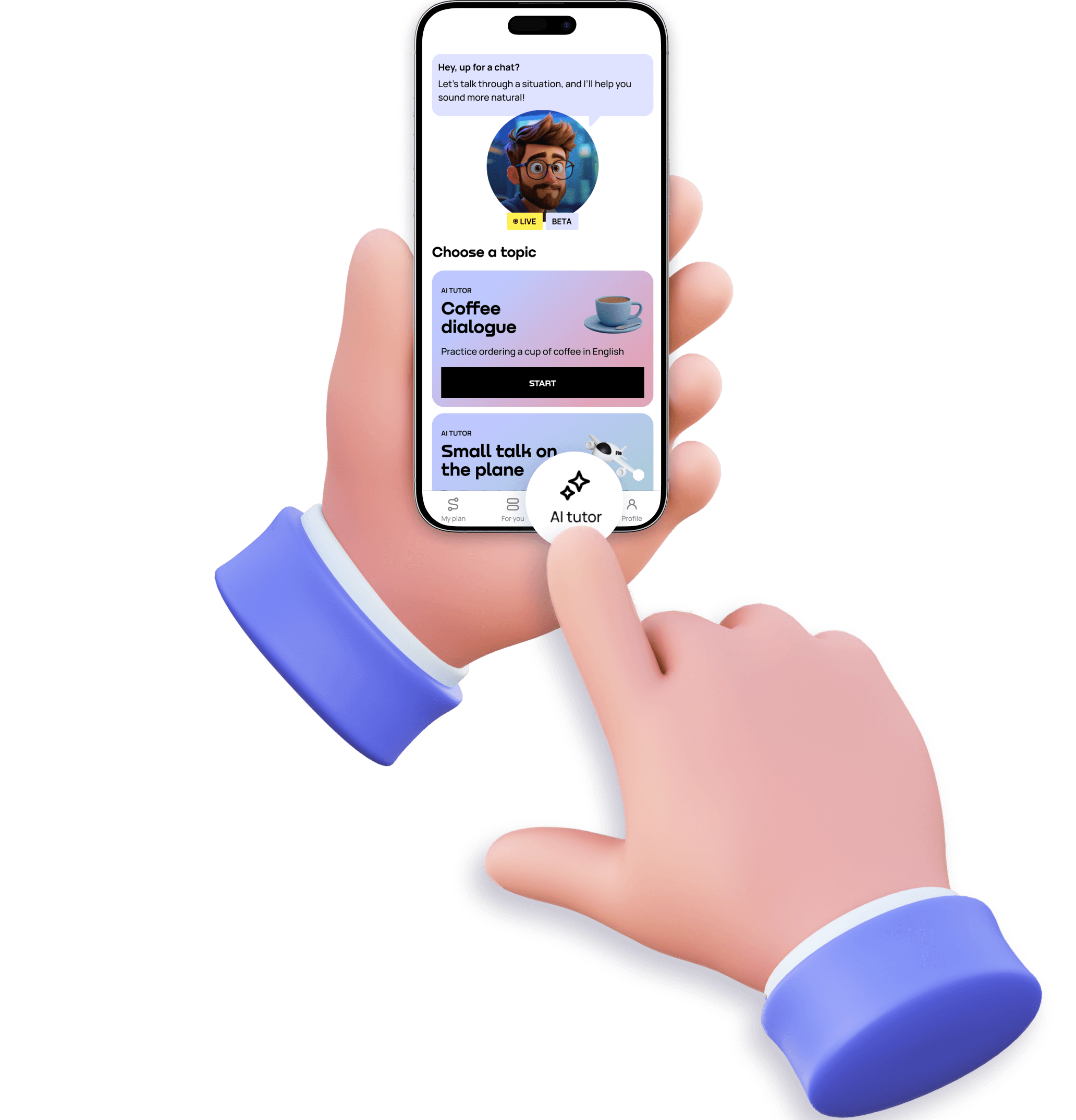 ..Nuestro AI Tutor está diseñado para mejorar tus habilidades de inglés con sesiones cortas y personalizadas que se ajustan a tus metas y a tu horario.
