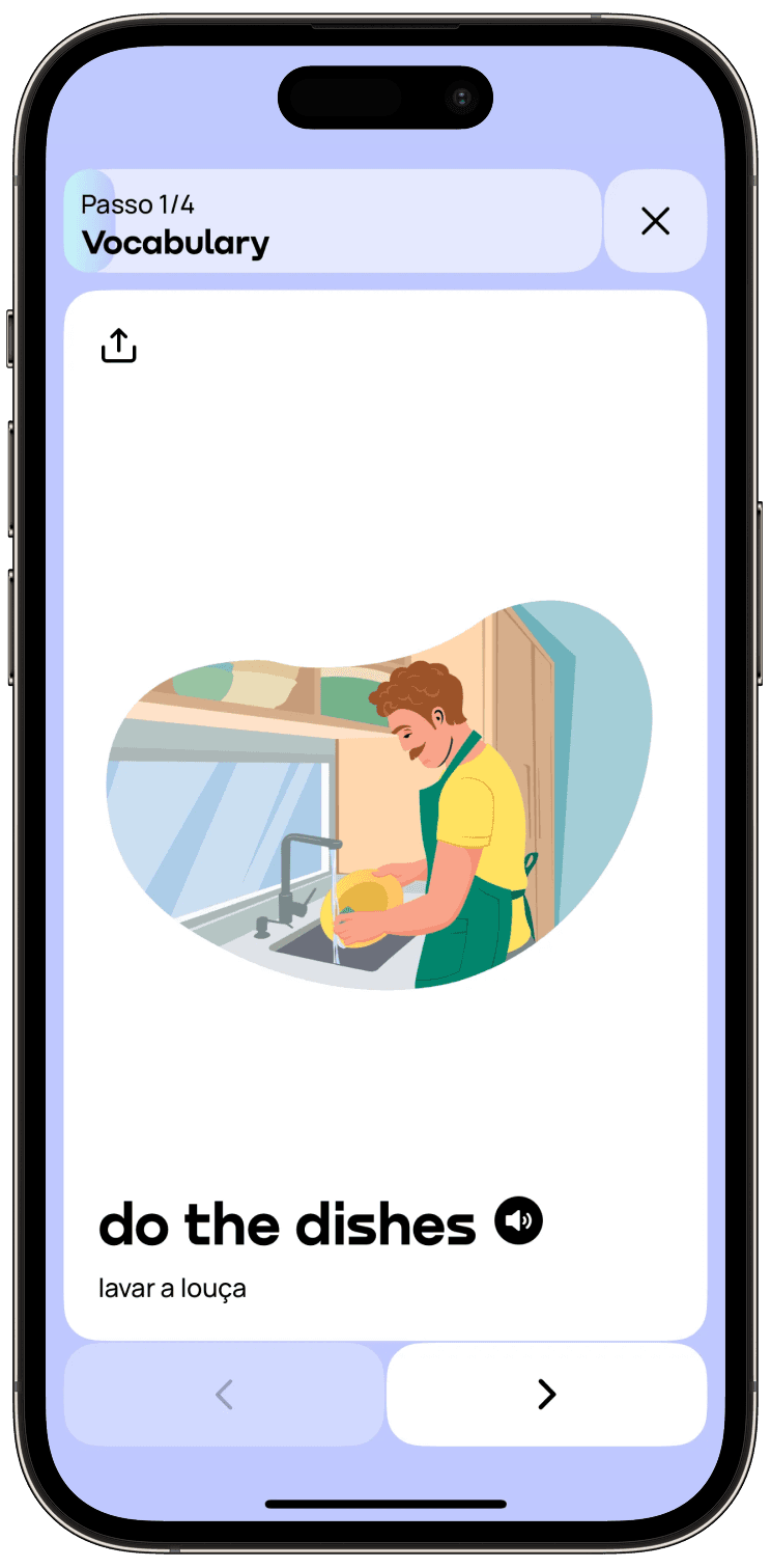 Além de ensinar as palavras, também explica a gramática e dá exemplos práticos que ajudam a fixar o conteúdo.