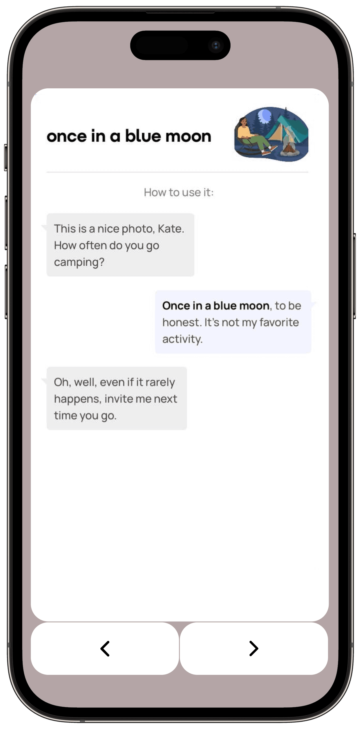 Get word definitions and tips to ensure you never get stuck while learning. Find helpful descriptions for every new word or phrase.