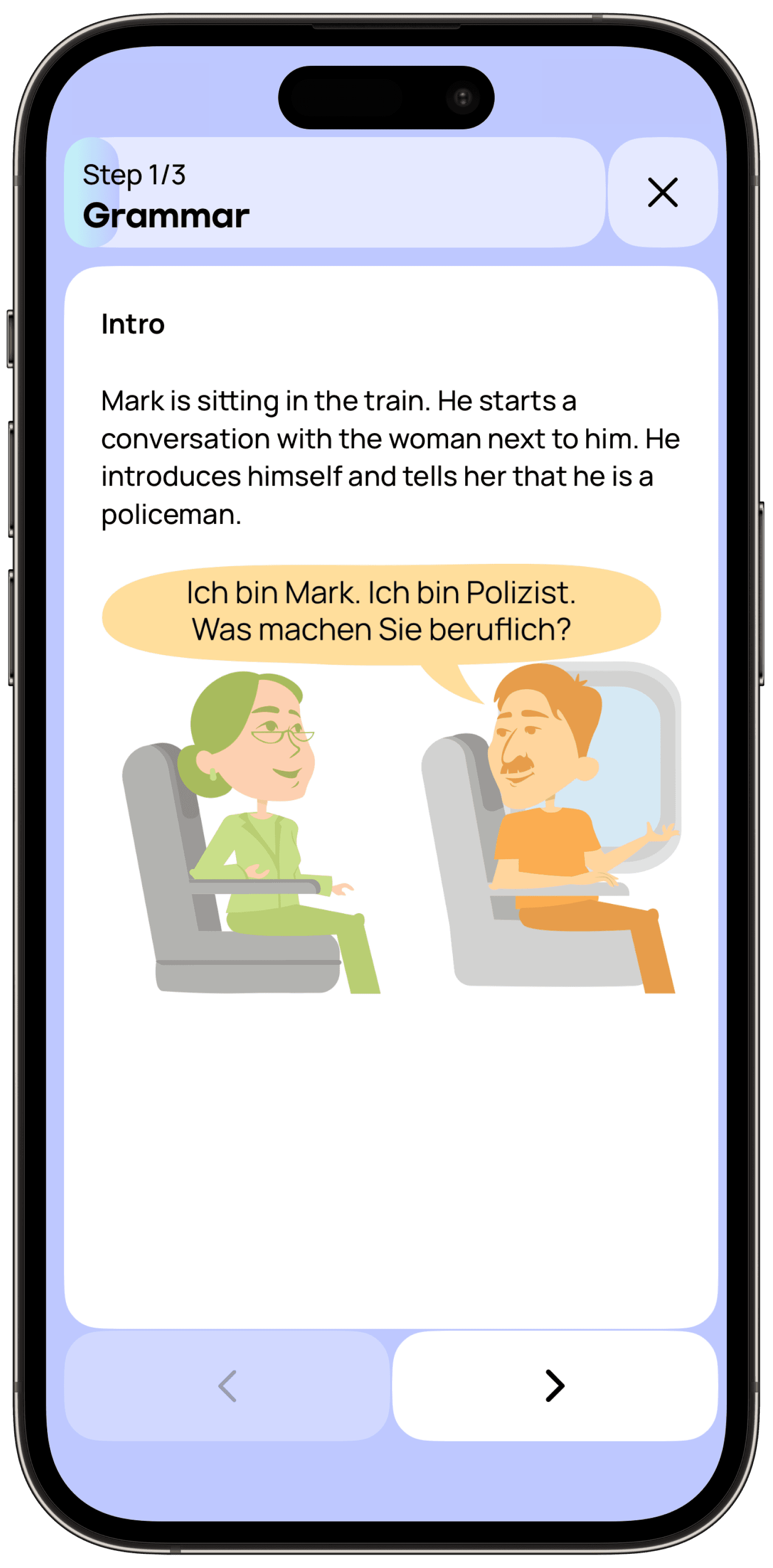 Put your fears aside and explore the wonderful world of German grammar with Promova. Complete interactive exercises that help you break down complex rules into simple, easy-to-understand steps.